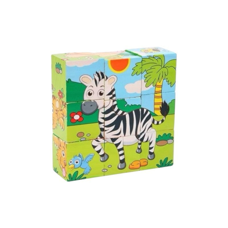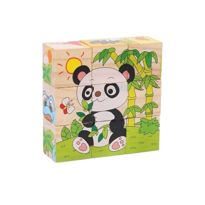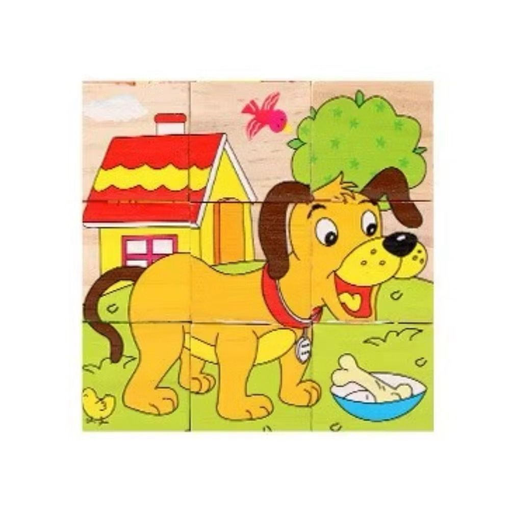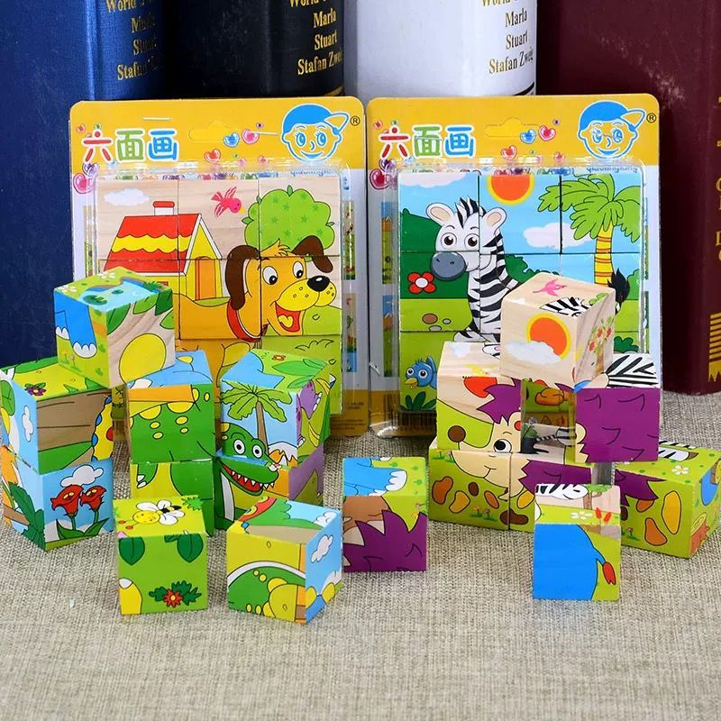 Quebra-Cabeça Em Blocos de Madeira Educativo Infantil Montessori De Seis Desenhos Cubo